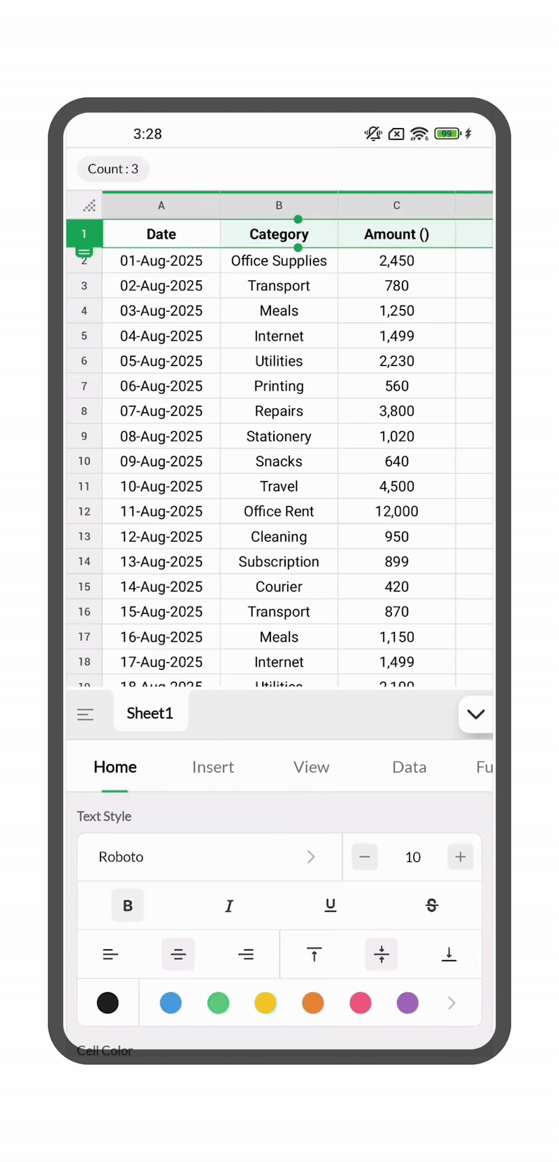 Applying the same formatting across different cells gets repetitive when you are organizing large sets of data. Tapping each cell or range individually takes time. You can pick multiple cells, ranges or even columns and collectively format, resize, or apply borders.