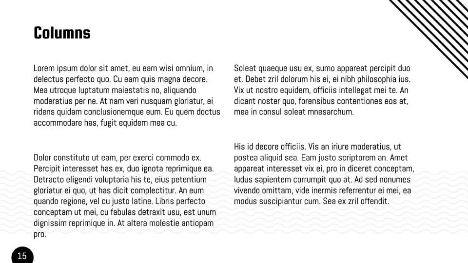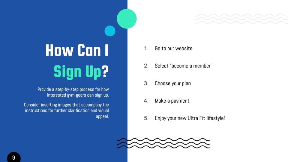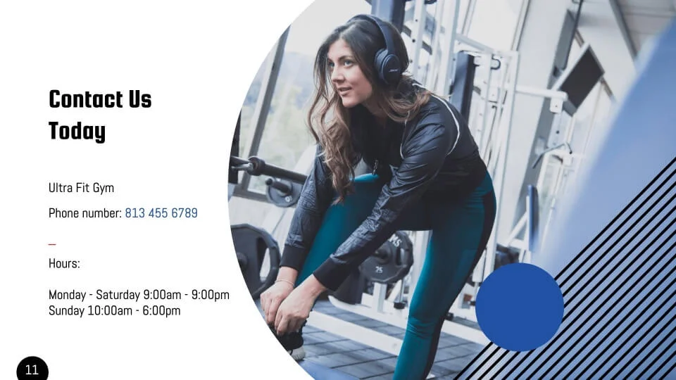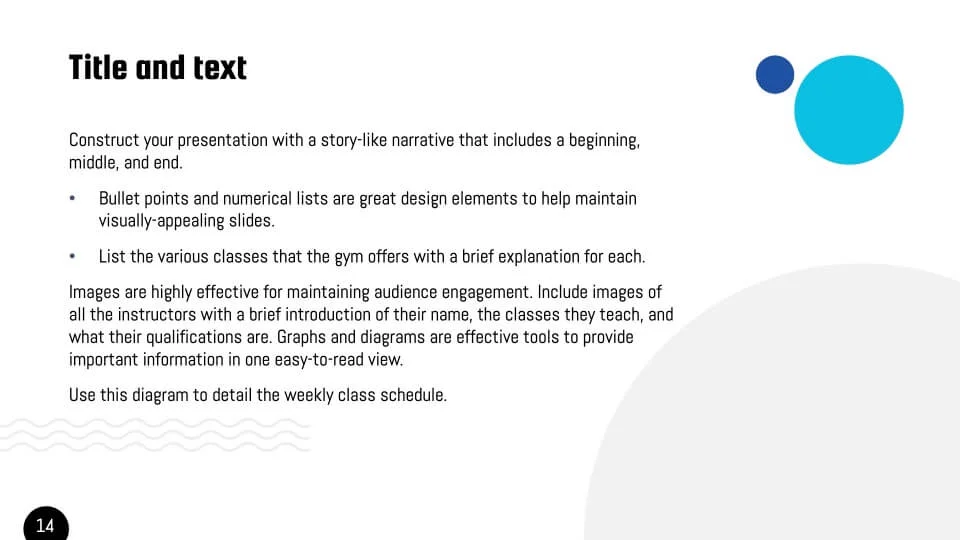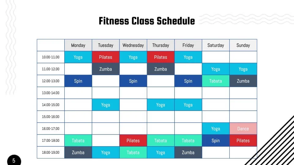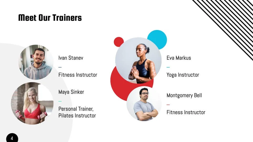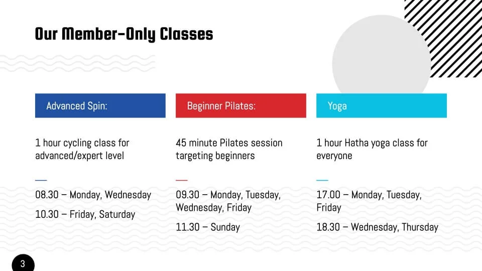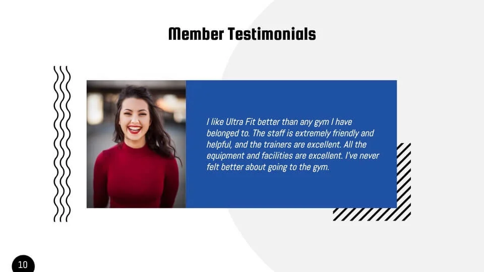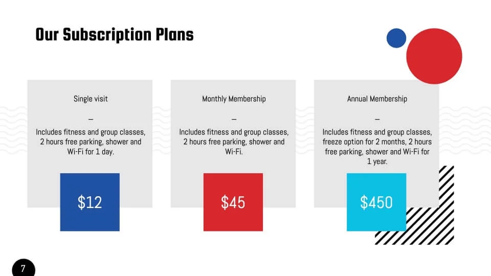 Playful geometric designs accented with blue and red highlights combine to create an energetic slide deck that will get your audience going.