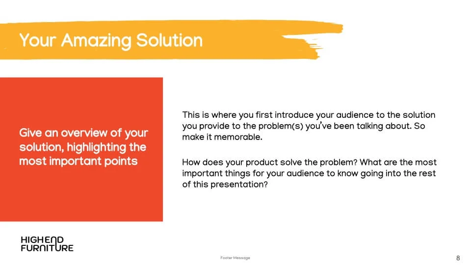 This vibrant, energetic template will highlight your products and your strategy for success. These modern slides are sure to make your pitch pop.