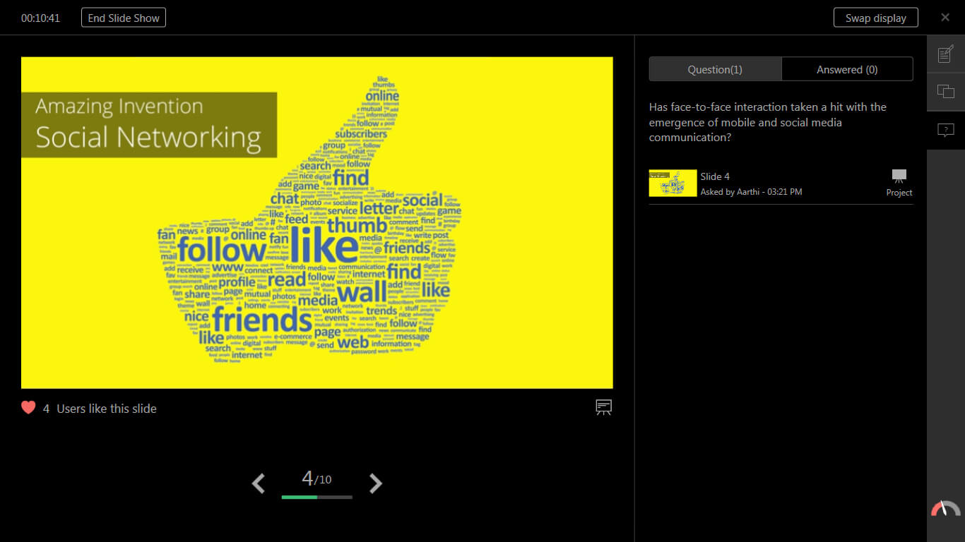 Listen to your trainees. Get insights on what engages them through analytical data, in addition to the dual screen with the trainer notes and a list of the slides you've presented.