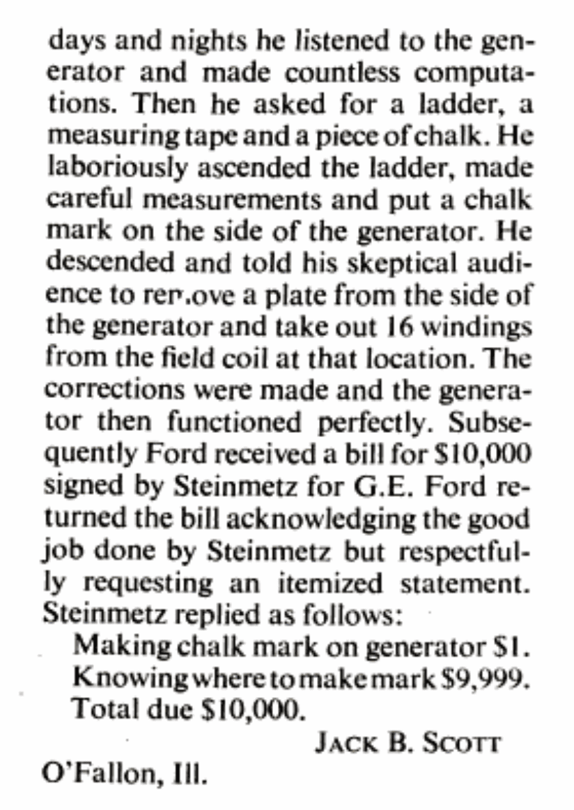 Steinmetz's invoice mentioned in the letter is the stuff of legends, and I'm sure you'd have at some point read a variation of this anecdote without knowing the details.