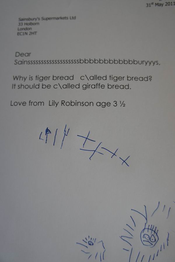 Well, three-year-old Lily Robinson had a question regarding a certain type of bread sold at Sainsbury's, a large supermarket chain in the UK. She felt that their naming decision was incorrect and pointed it out to them directly, as you can learn from her mother's blog post.