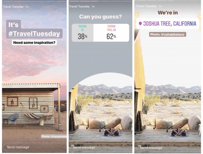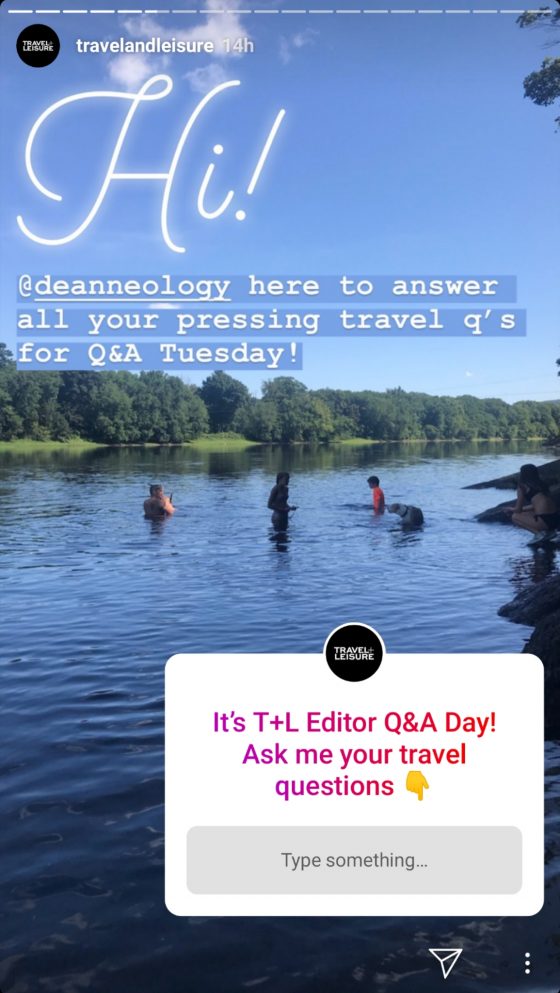 This is like a social media takeover, where the editor of the magazine takes over their Instagram account to provide travel advice to followers who ask questions. This opens up room for further conversations in the brand’s DMs, if the followers have additional questions.