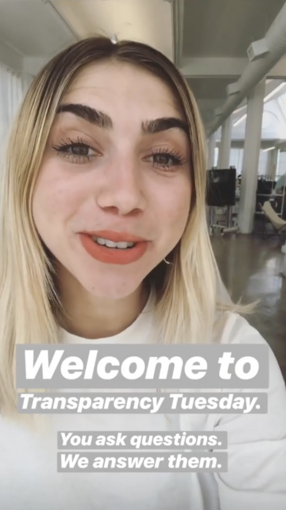 People who’ve been keeping their eye on social media trends will know that transparency from brands is very appreciated by their audience. In line with this, Everlane has a series which they call Transparency Tuesdays, where the audience can ask any question, and the brand answers honestly. All these stories are also stored in their highlights, so they’re always accessible.