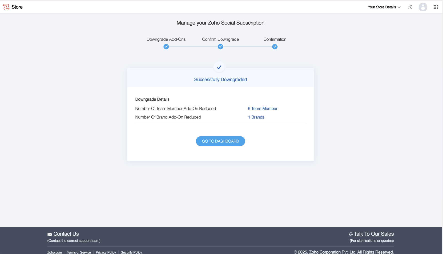 - Receive Confirmation - Once the downgrade is successfully processed, you will receive a confirmation message indicating that the add-ons have been removed from your subscription.