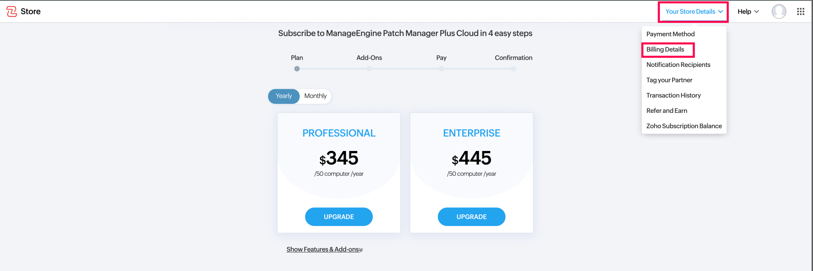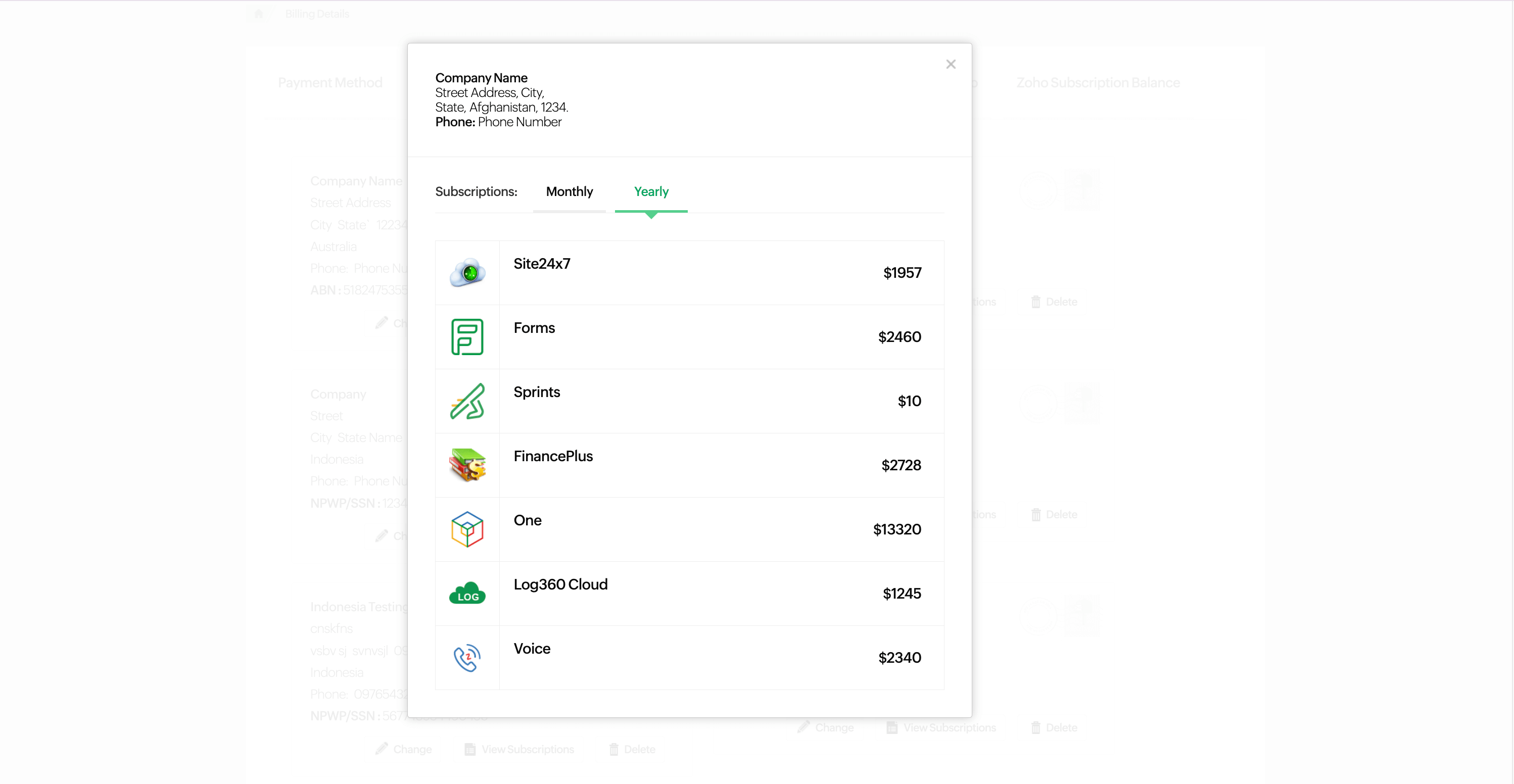 - You can filter and switch between Monthly and Yearly subscription views.