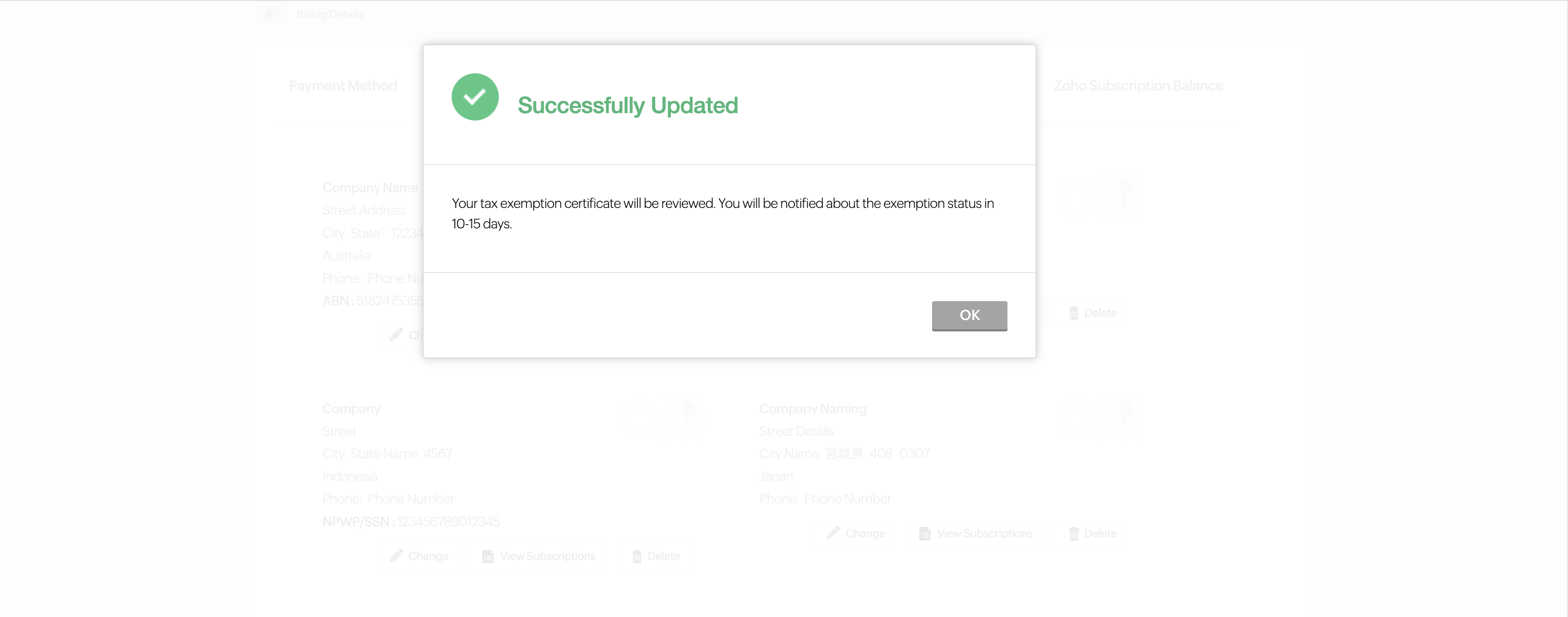 - When updating your Billing Address, the change will apply to all subscriptions linked to that address.