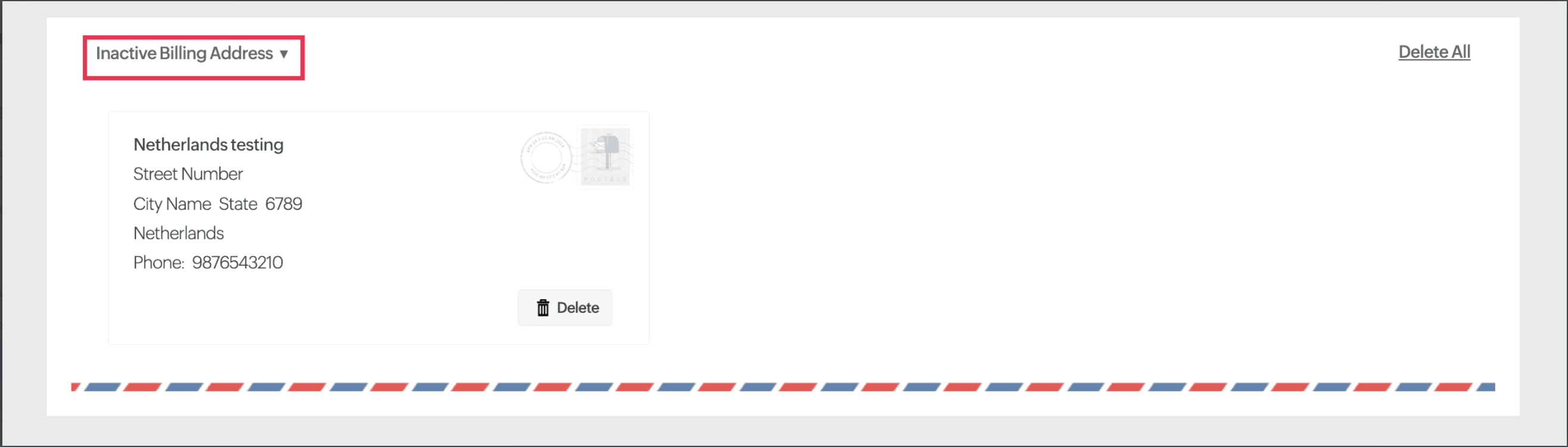 - Click on the Delete option below the address you wish to remove.