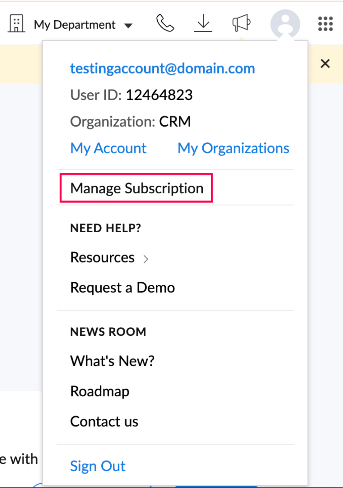 - Access Subscription Option: Click on your profile icon in the top-right corner of the top band.