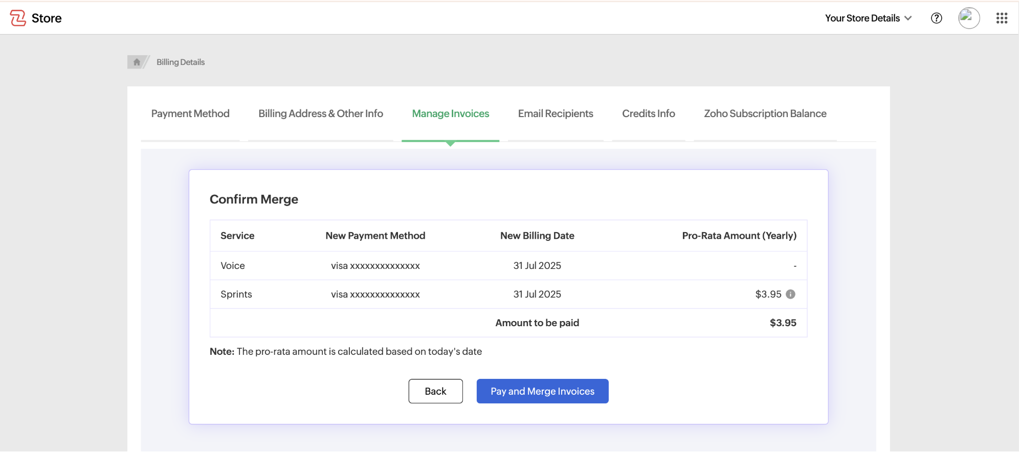 Click on "Pay and Merge Invoices" to proceed.