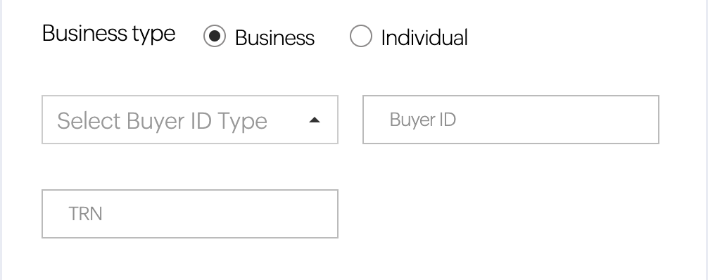 Input: The length of the ID will vary depending on the selected Buyer Category.
