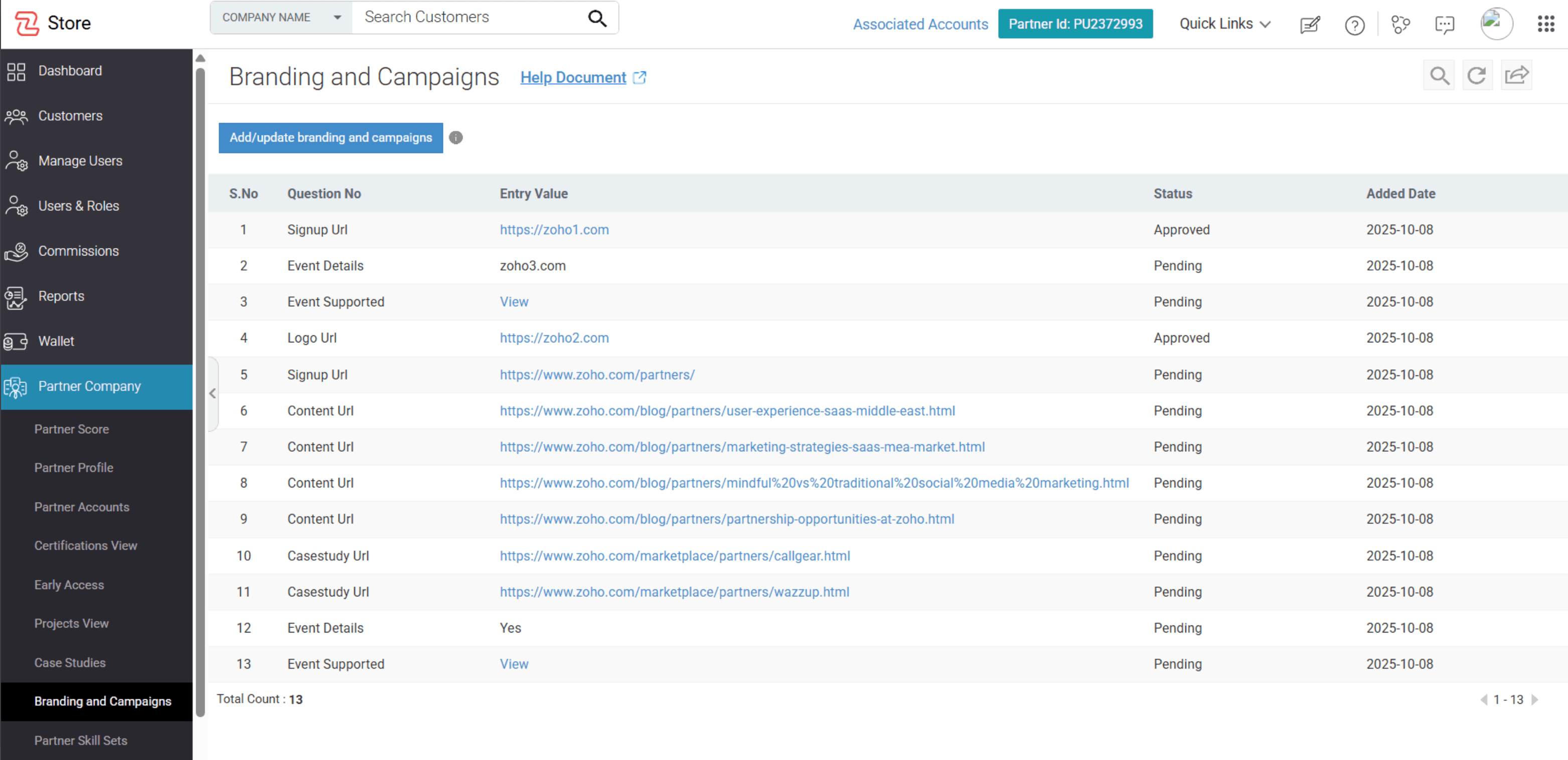 Once you've submitted the relevant information, your PAM will approve or reject it based on the above mentioned criteria. In either of these cases, you will receive an email notification with an update along with the reason for rejection (in case it gets rejected). You can also check the evaluation status on the Branding and Campaigns page on the Partner Store.