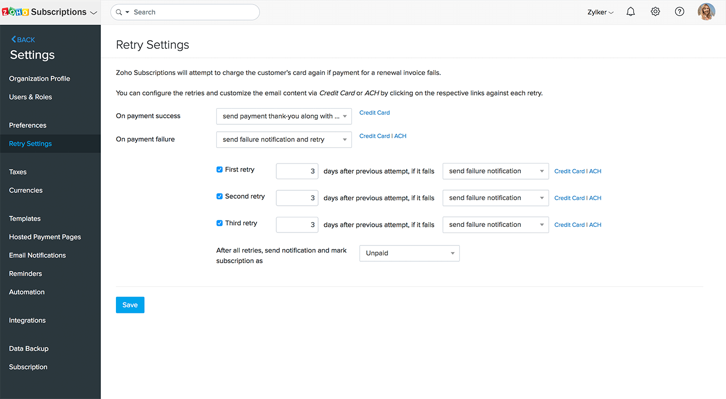 Prevent involuntary churn and revenue loss with automated retries and payment reminders.