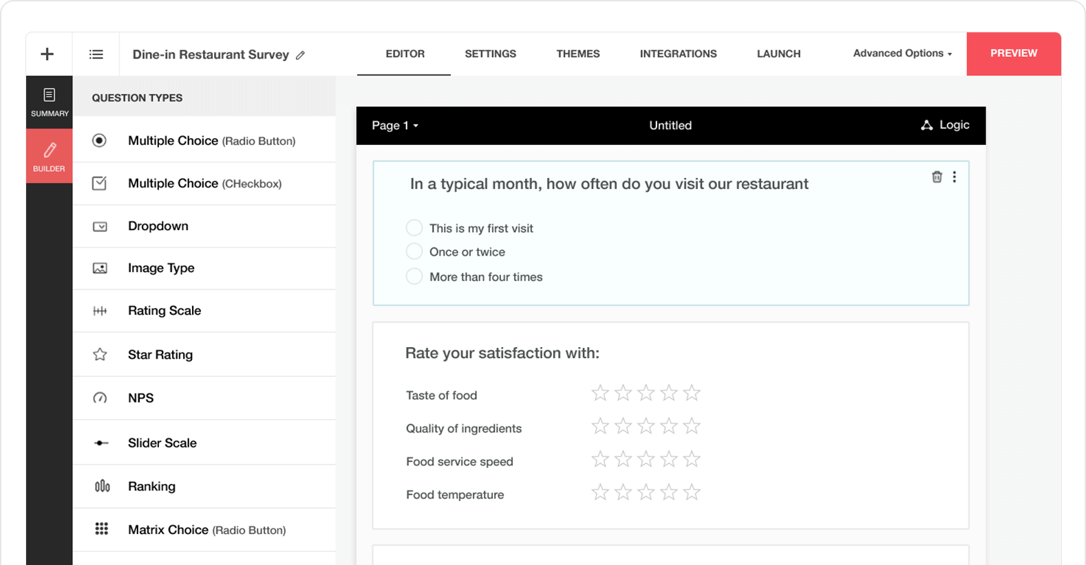 With over 25 question formats available, you can design your survey to ask the right questions in the right way.