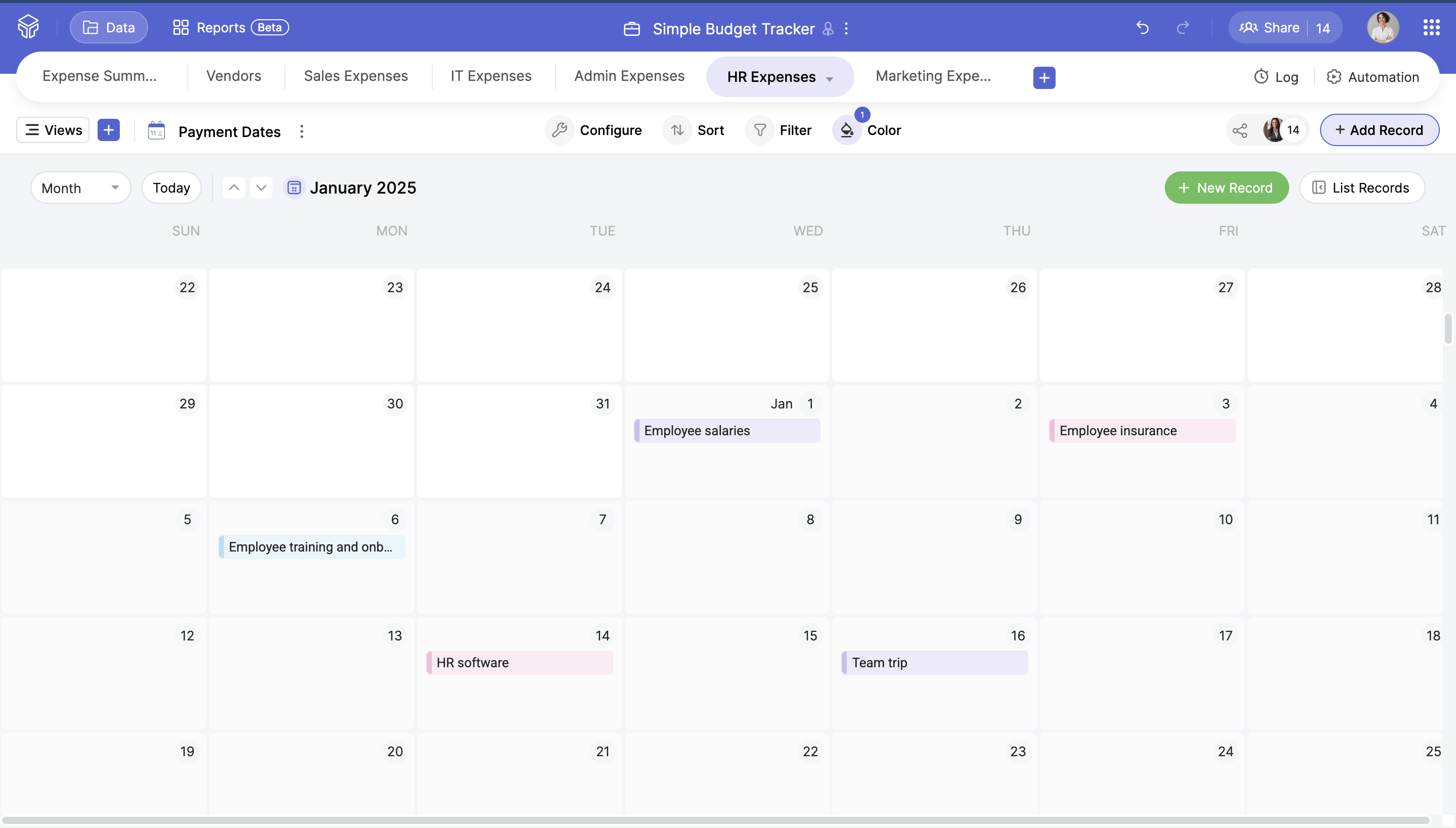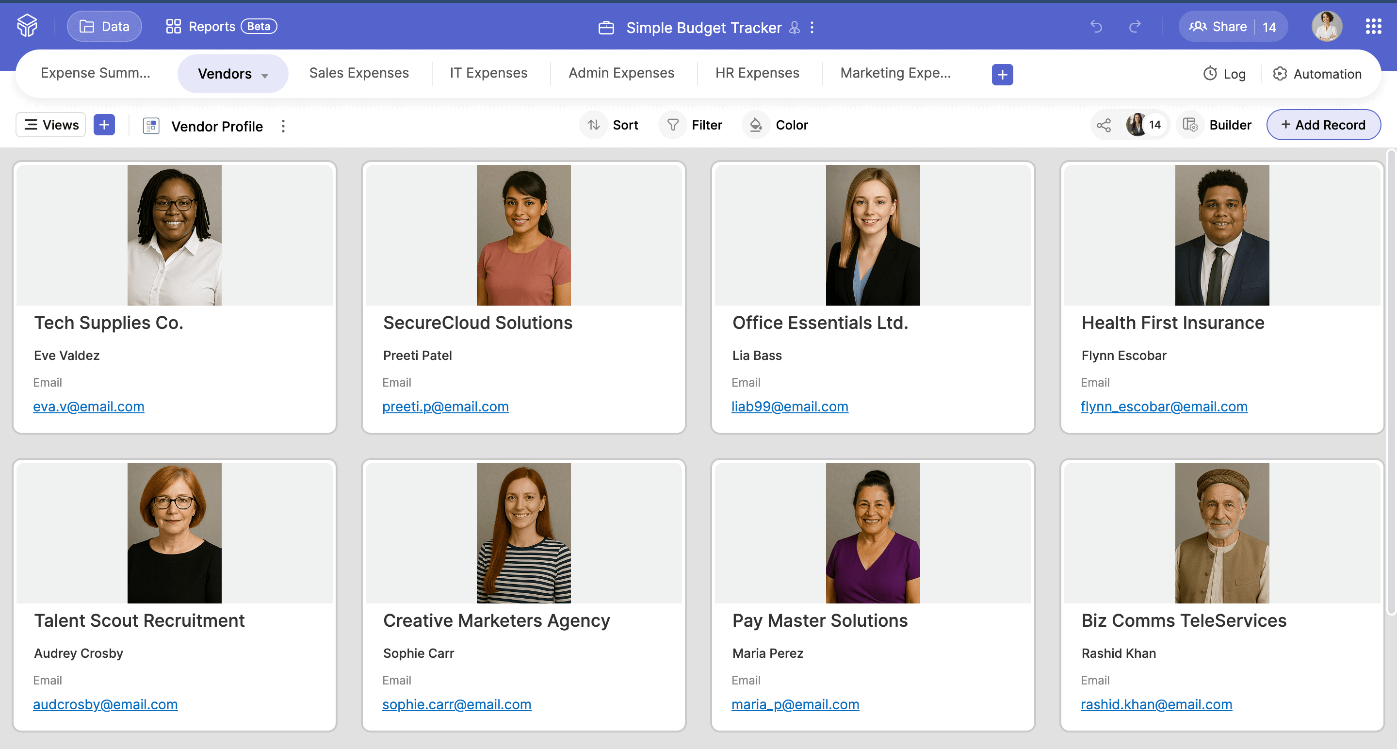 Track payments, allocate resources, and analyze expense patterns using Zoho Tables' budget tracker template. It's quick, easy, and designed to make business budgeting a breeze. Start your budget planning today.
