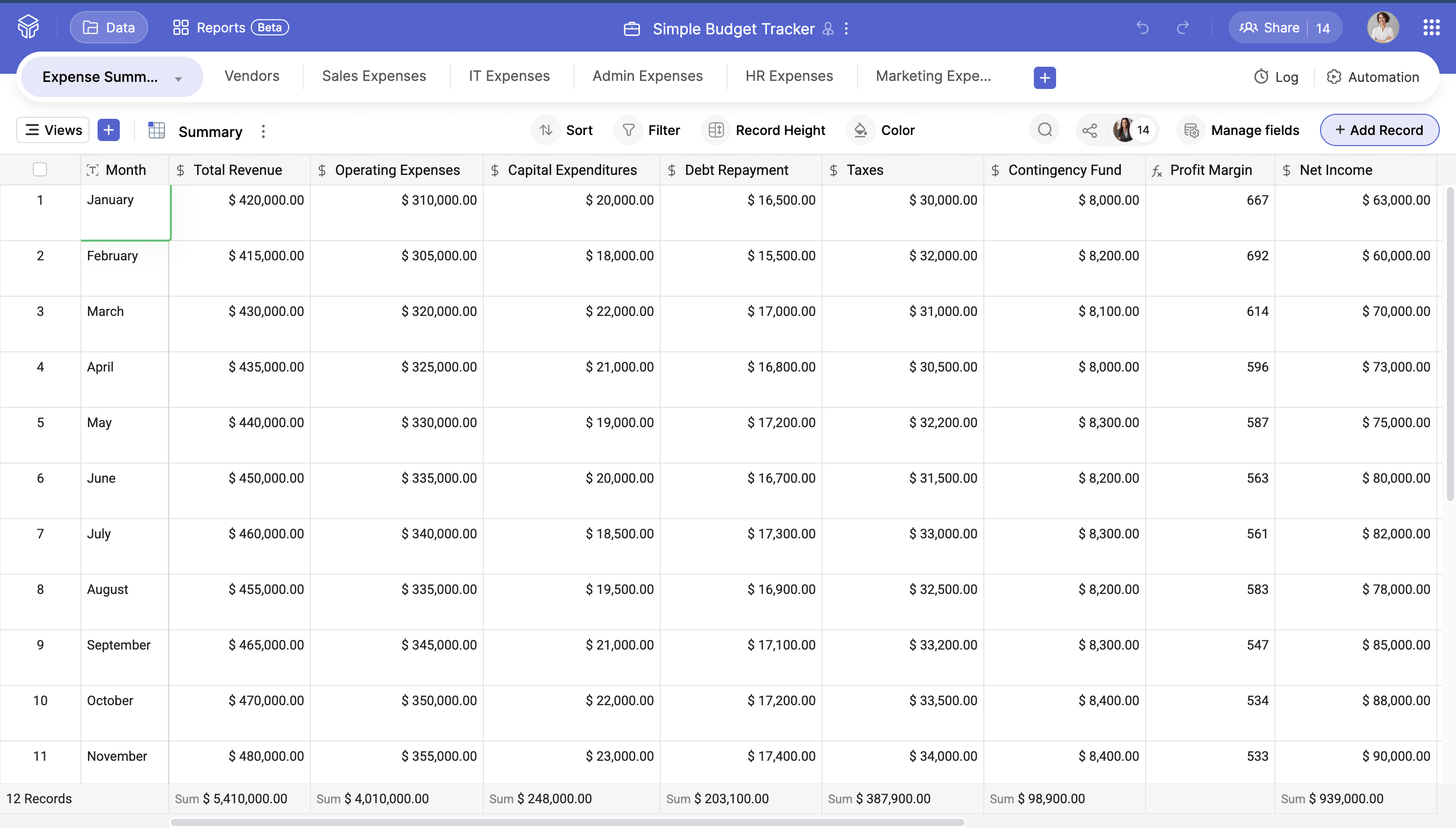 How Zoho Tables helps businesses track their budget efficiently