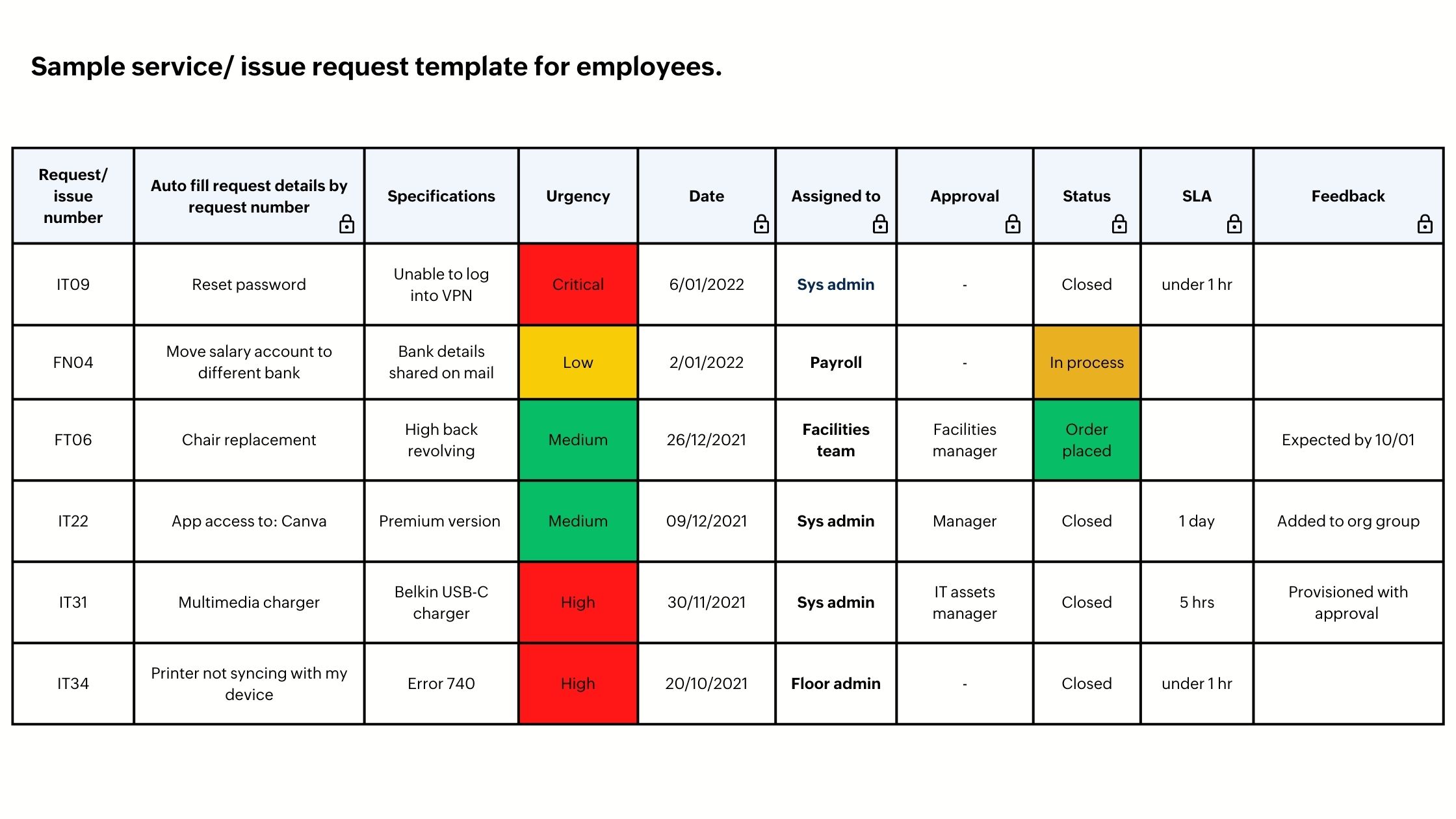 Self-service: New hires should be able to request service or assets, or report problems across departments without difficulty or delay.