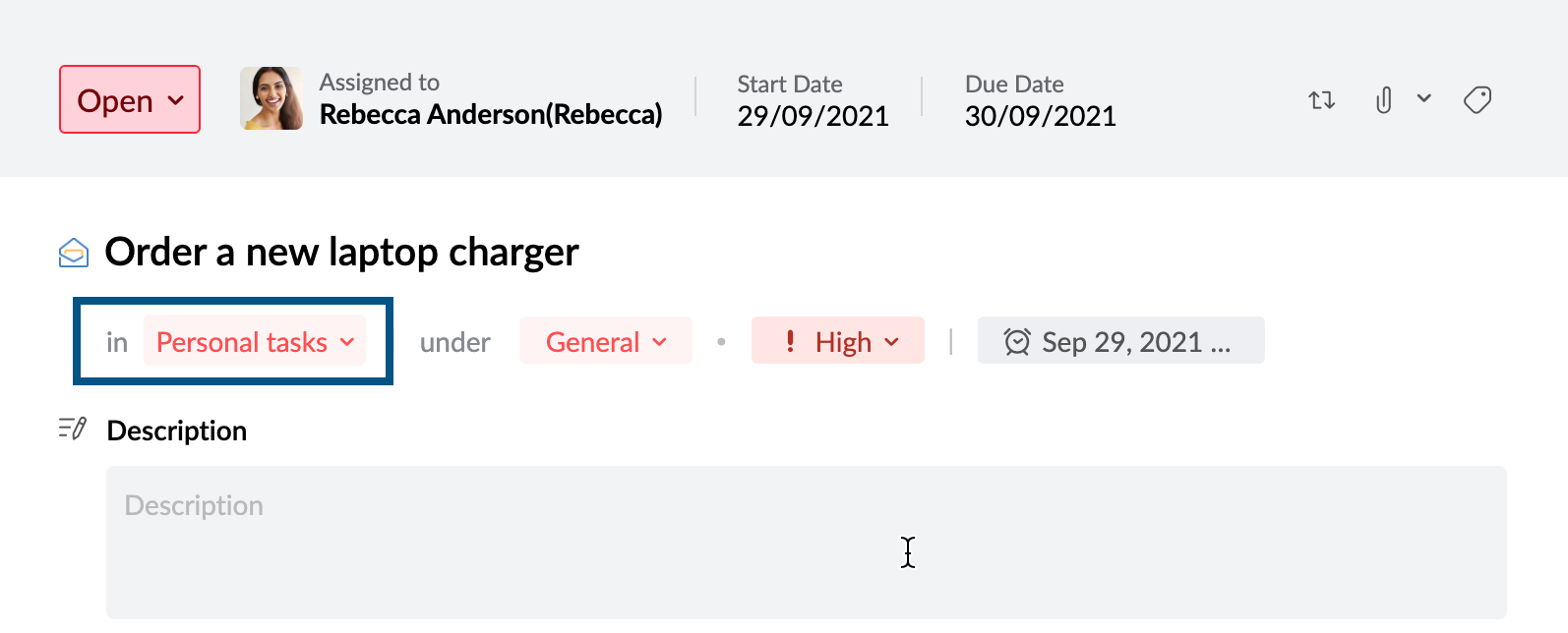 ในส่วนคำอธิบาย คุณสามารถเพิ่มข้อมูลเพิ่มเติมเกี่ยวกับงานได้ ตัวอย่างเช่น สมมติว่าคุณต้องเขียนบล็อกและคุณมีลิงก์สำหรับการค้นคว้าและไอเดียอยู่ในใจ คุณสามารถจดบันทึกข้อมูลทั้งหมดไว้ในคำอธิบายเพื่อใช้อ้างอิงในภายหลังได้ คำอธิบายที่คุณเพิ่มจะแสดงให้ทุกคนที่มีสิทธิ์ดูงานเห็น ซึ่งรวมถึงสมาชิกกลุ่ม งานหลัก และผู้ได้รับมอบหมายงานย่อย และผู้ได้รับเชิญ