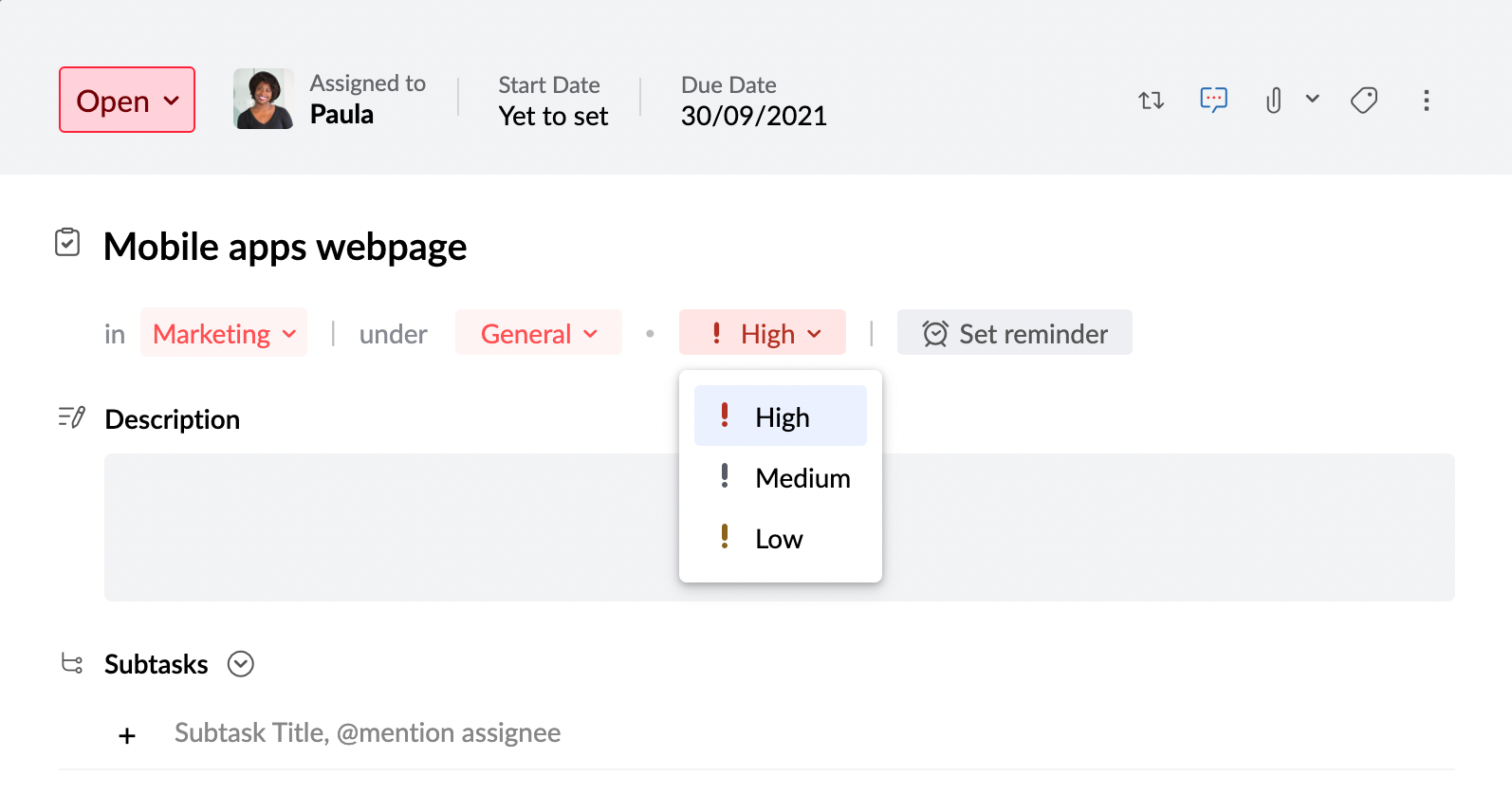 - ในกรณีของงานกลุ่ม ถ้าผู้ได้รับมอบหมายงานย่อยเป็นส่วนหนึ่งของกลุ่ม พวกเขาจะสามารถแก้ไขงานย่อยได้ เช่น ตั้งค่าลำดับความสำคัญ วันครบกำหนด และเพิ่มคำอธิบาย