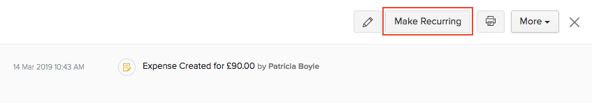 If you incur an expense repeatedly over a period of time, you can choose to make it recurring in Zoho Books. Recurring expenses are generated automatically after an interval of time. Here’s how you can mark an expense as recurring: