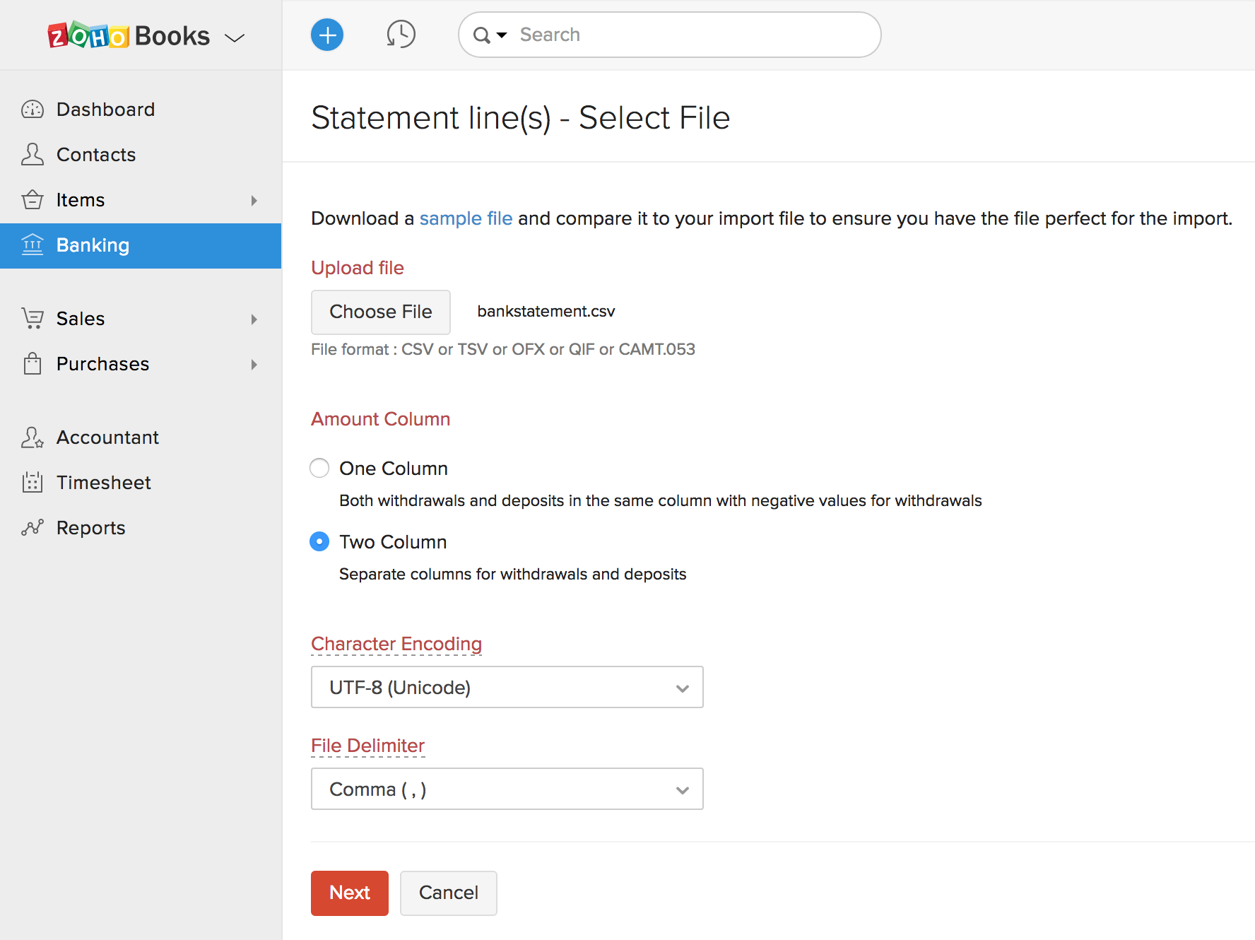 Insight: Zoho Books supports only CSV, TSV and XLS file formats for importing data. So ensure that you export data from your system in one of these formats.