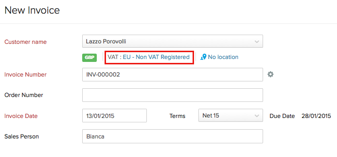 Customer’s VAT treatment is EU-Non VAT Registered.