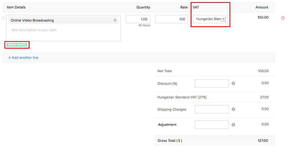The item added is a Digital Service.