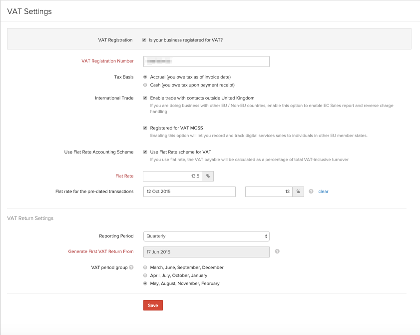 - If you are setting up VAT for the first time, you will see the VAT Settings page.