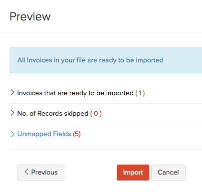 Now, the file containing the invoices will be imported into Zoho Books.