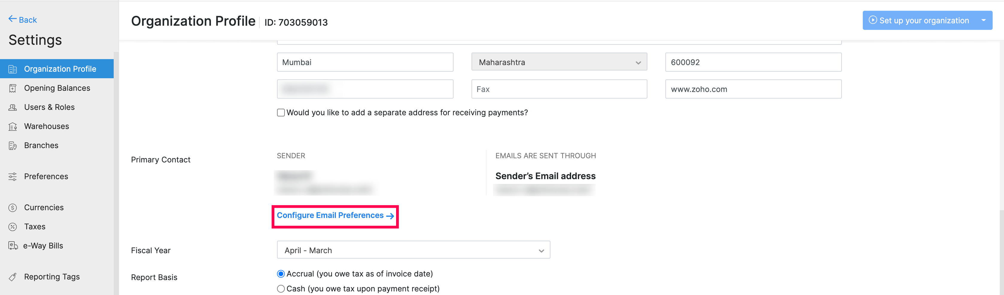 - Log in to your Zoho Books organization.