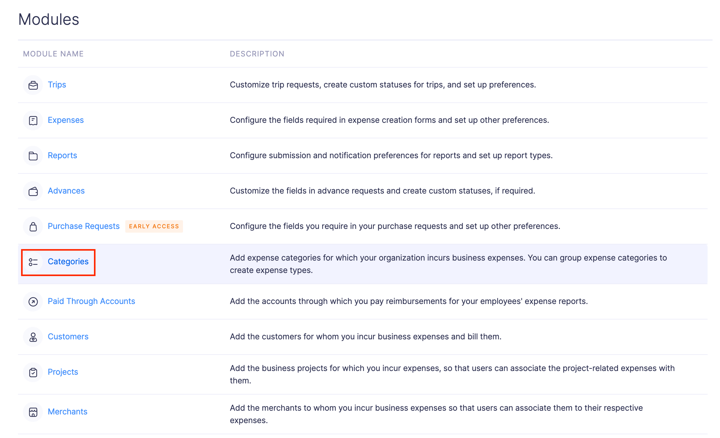 If you’ve categories data elsewhere, you can import it in CSV or TSV format into Zoho Expense.