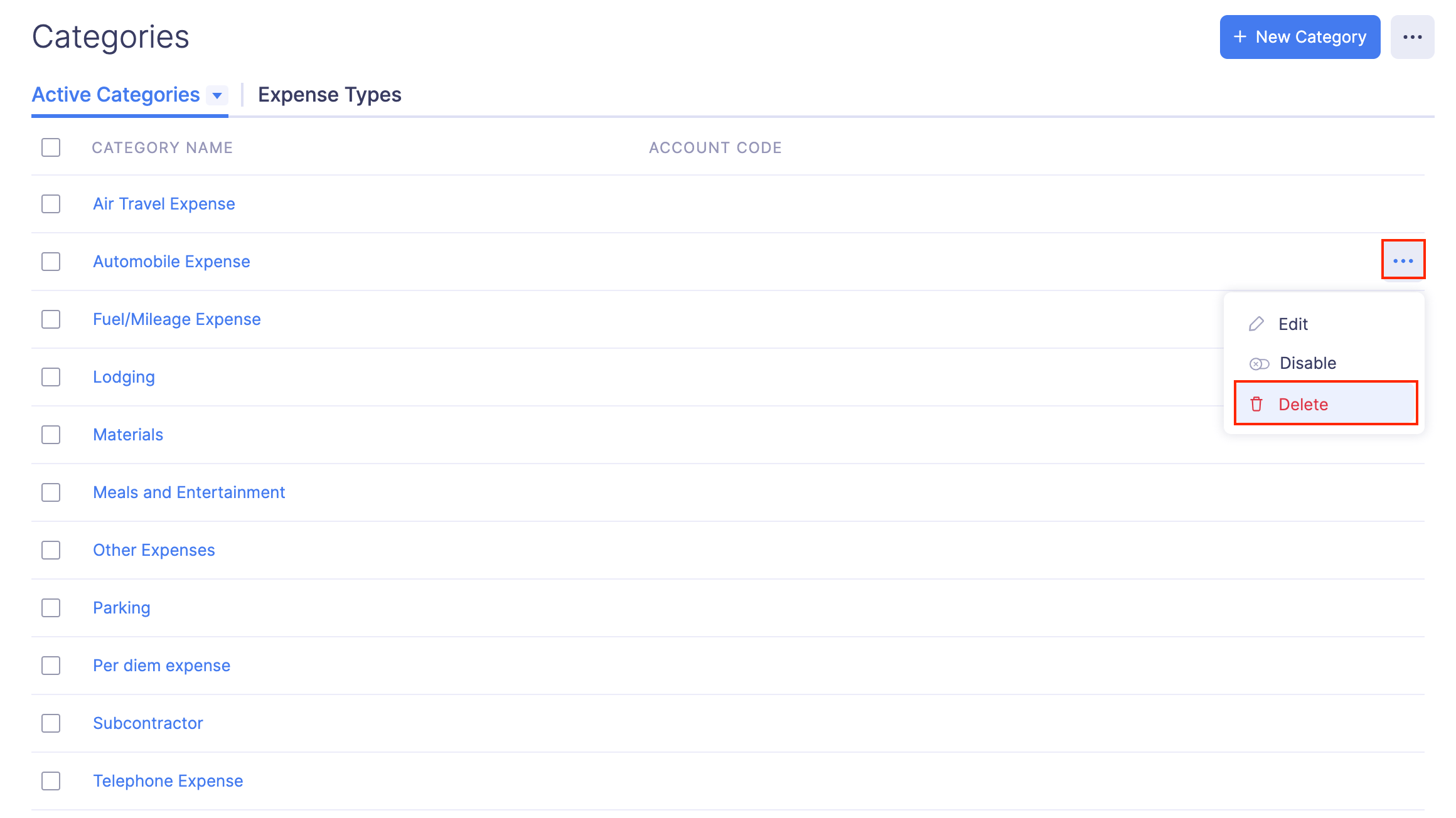 - Once you mark a category as inactive, you will not be able to associate it with expenses.