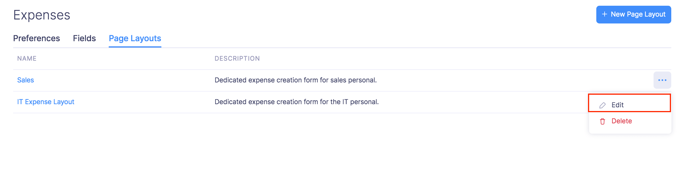 Note: You can only create page layouts for Expenses, Trips and Purchase Requests modules.