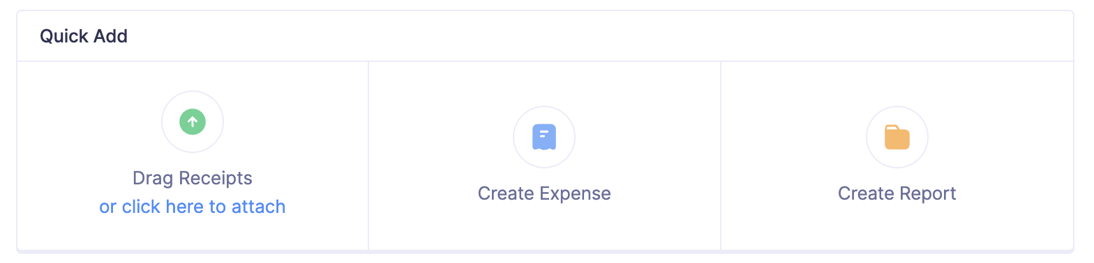 You can upload your receipts, record your expenses, and create reports right from your home page.