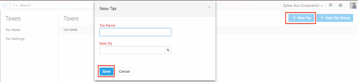 Tax Name It refers to the name you’d like to assign to a particular tax. Ex: GST in Australia is 10%.