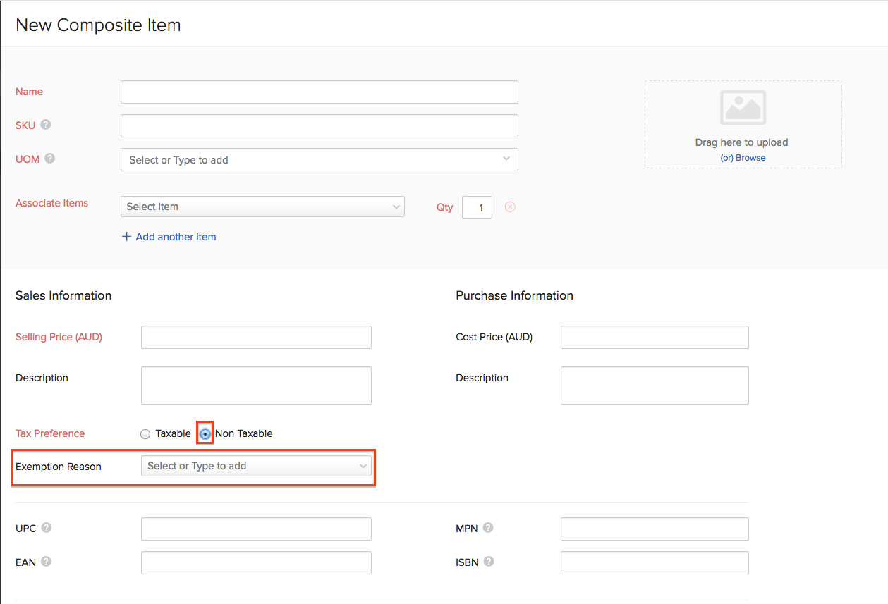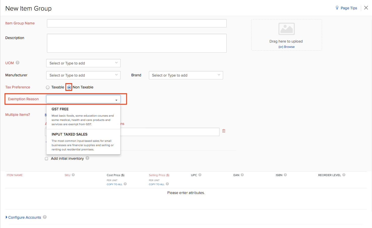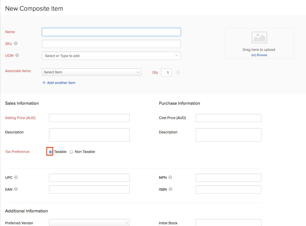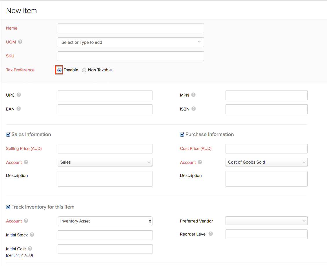 The Australia tax module is exclusive to the Australian edition of Zoho Inventory. This feature will be available when you select Australia as your country during quick setup of an organization. Below are a list of operations you can perform with tax.