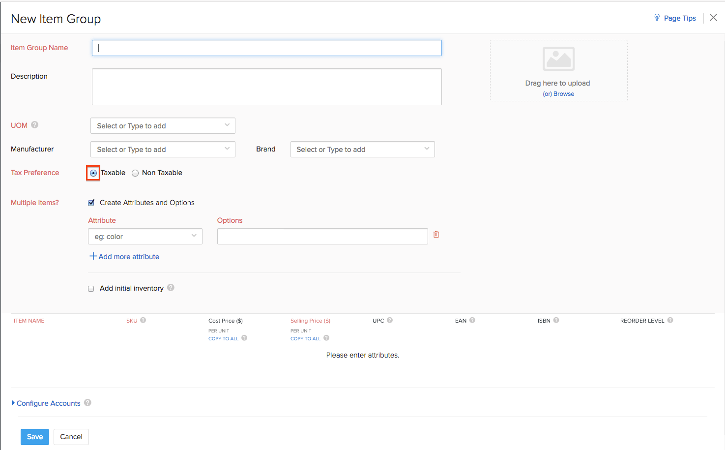 Setting the tax preference of an item group as Non-Taxable will make all the items under this group non-taxable.