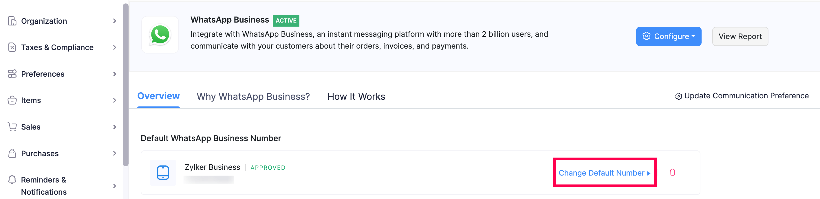 Your Zoho Inventory organisation will be connected with WhatsApp.