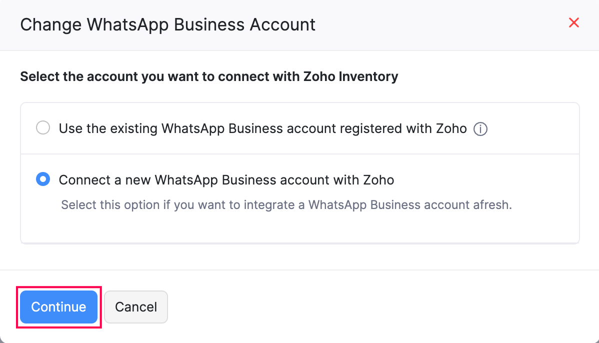 Your Zoho Inventory organization will be connected with WhatsApp.