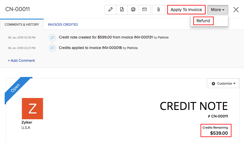 4. Record a Refund or Apply Credits to Invoices