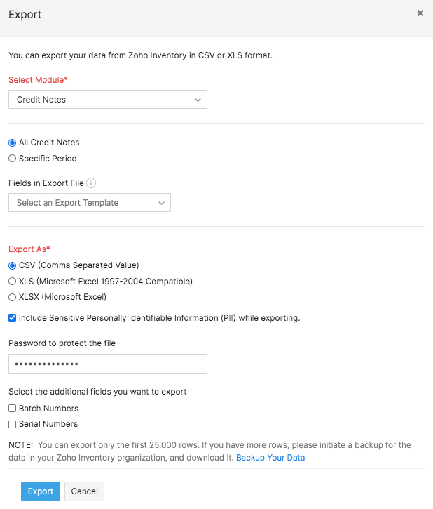 3. Click the Export Credit Notes option.