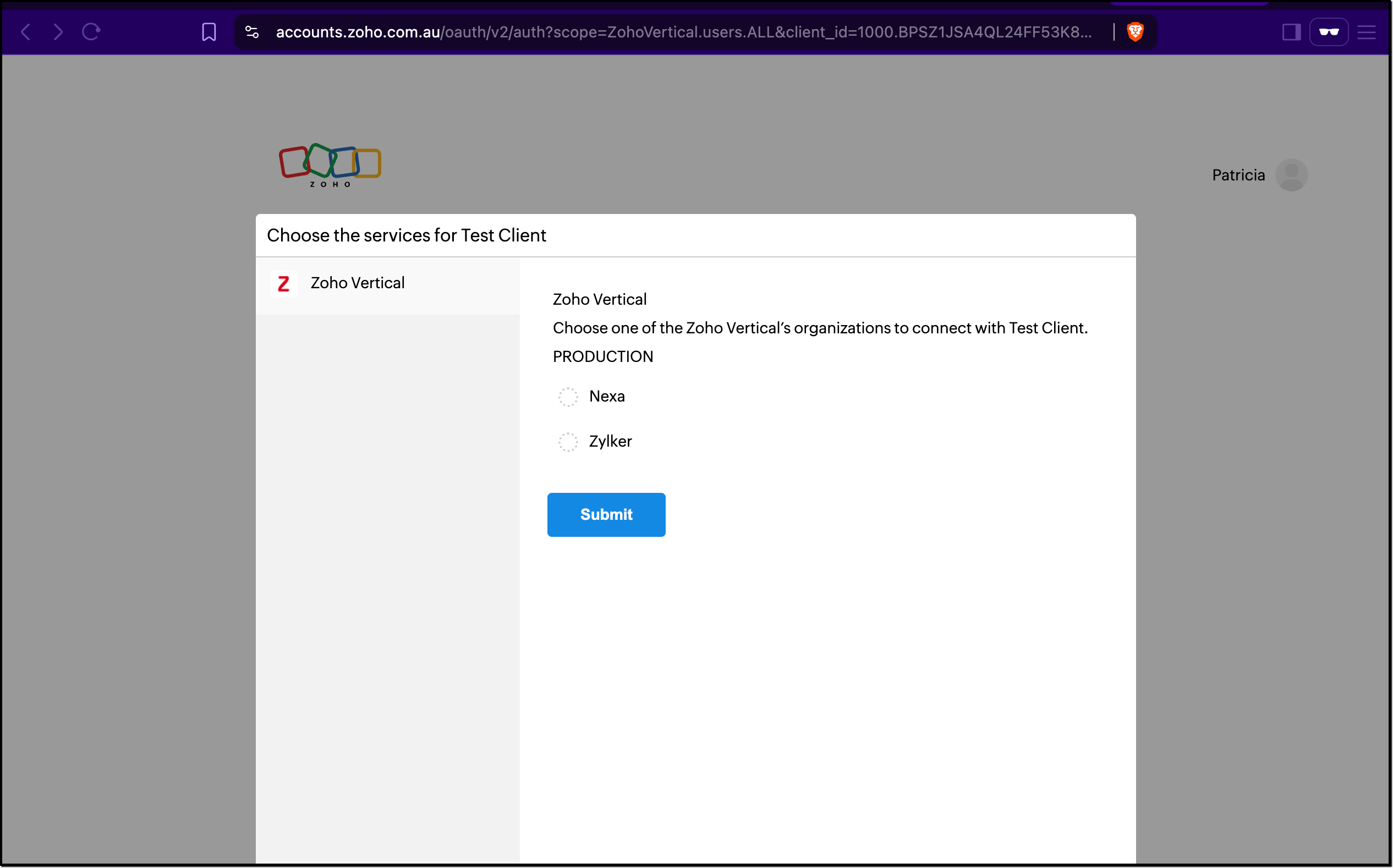 On the contrary, if your application has only one organization (for instance, one in production and none in sandbox or developer environments), the system automatically generates the grant token for the same, without asking for any choices. - For self-clients, the system presents the list of available organizations, irrespective of the number of organizations in your application.