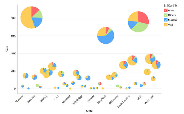 Bất kể là dữ liệu rời rạc hay liên tục, biểu đồ có thể trực quan hóa mọi loại dữ liệu để phân tích và diễn giải hiệu quả. Biểu đồ có nhiều loại khác nhau như biểu đồ Vùng, Đường, Thanh, Xếp chồng, Hình tròn, Phân tán, Kết hợp, Phễu, Mạng nhện v.v.. Mỗi loại biểu đồ lại cung cấp nhiều tùy chọn tương tác cho người dùng phân tích chuyên sâu hơn và sát với ngữ cảnh hơn.