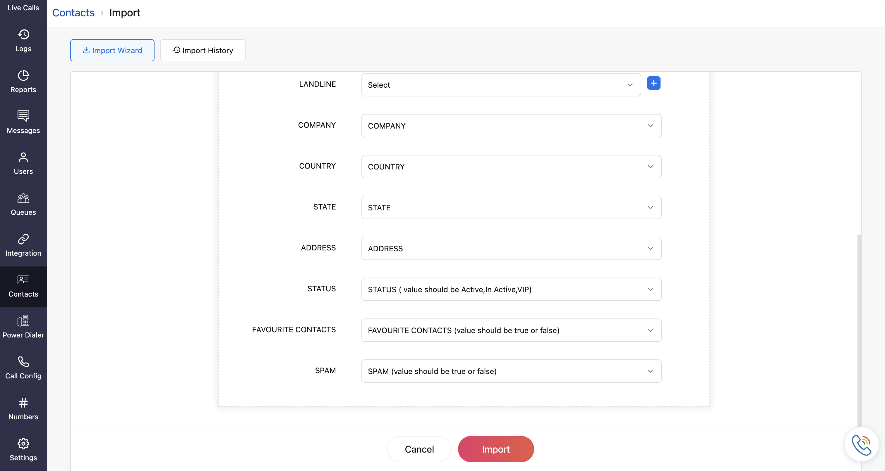 Zoho Voice automatically maps fields in your CSV file that exactly match the contact fields. For any unmatched fields, you’ll be prompted to map the CSV columns to the appropriate contact fields manually.