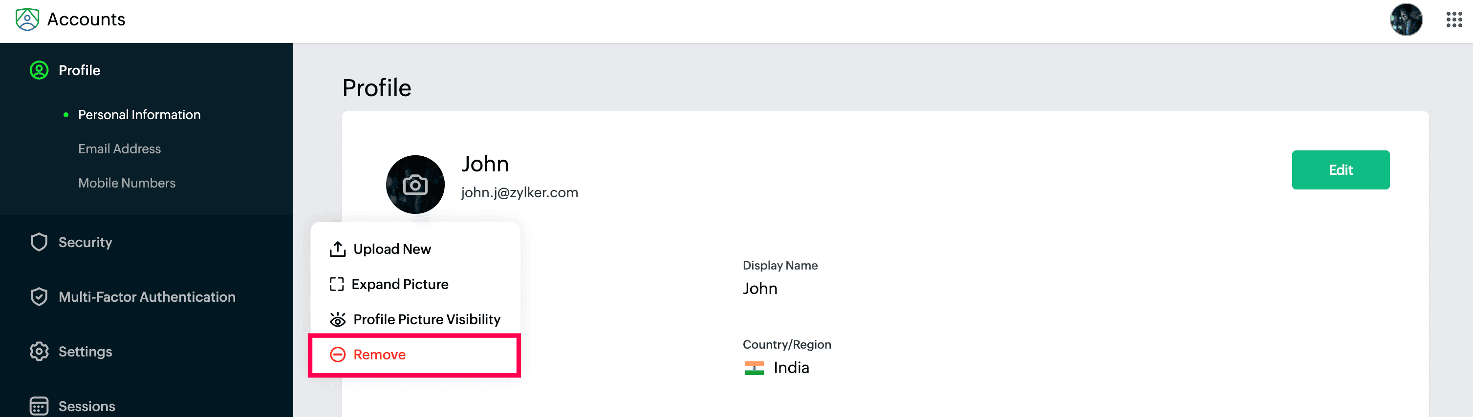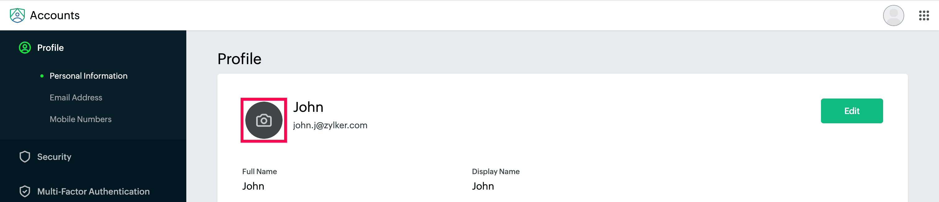Changes made in the Zoho Accounts page will be applicable across all your Zoho products associated with this email ID.