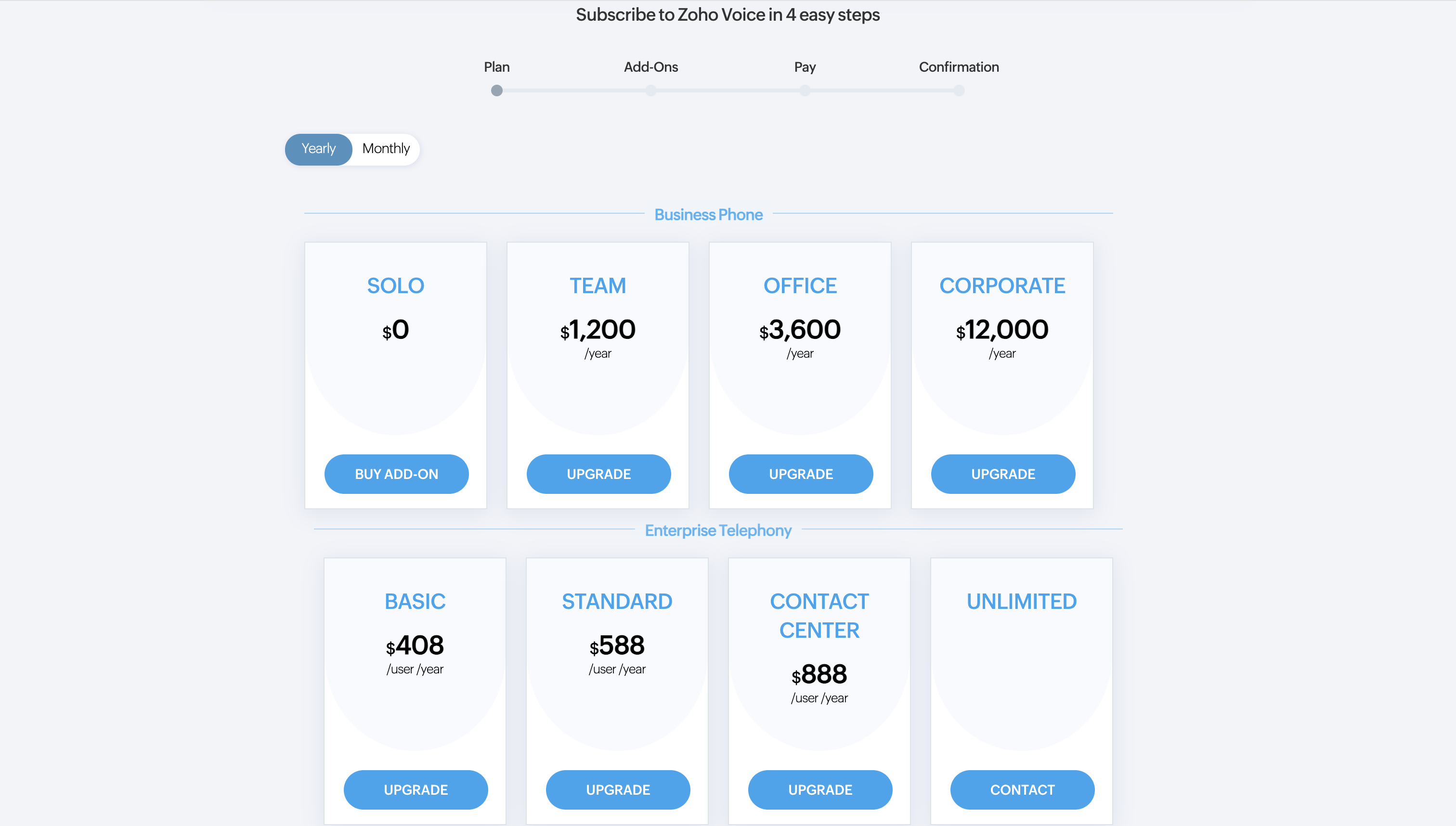 - Once the payment is successful, your Zoho Voice organization will be upgraded to the selected subscription plan.