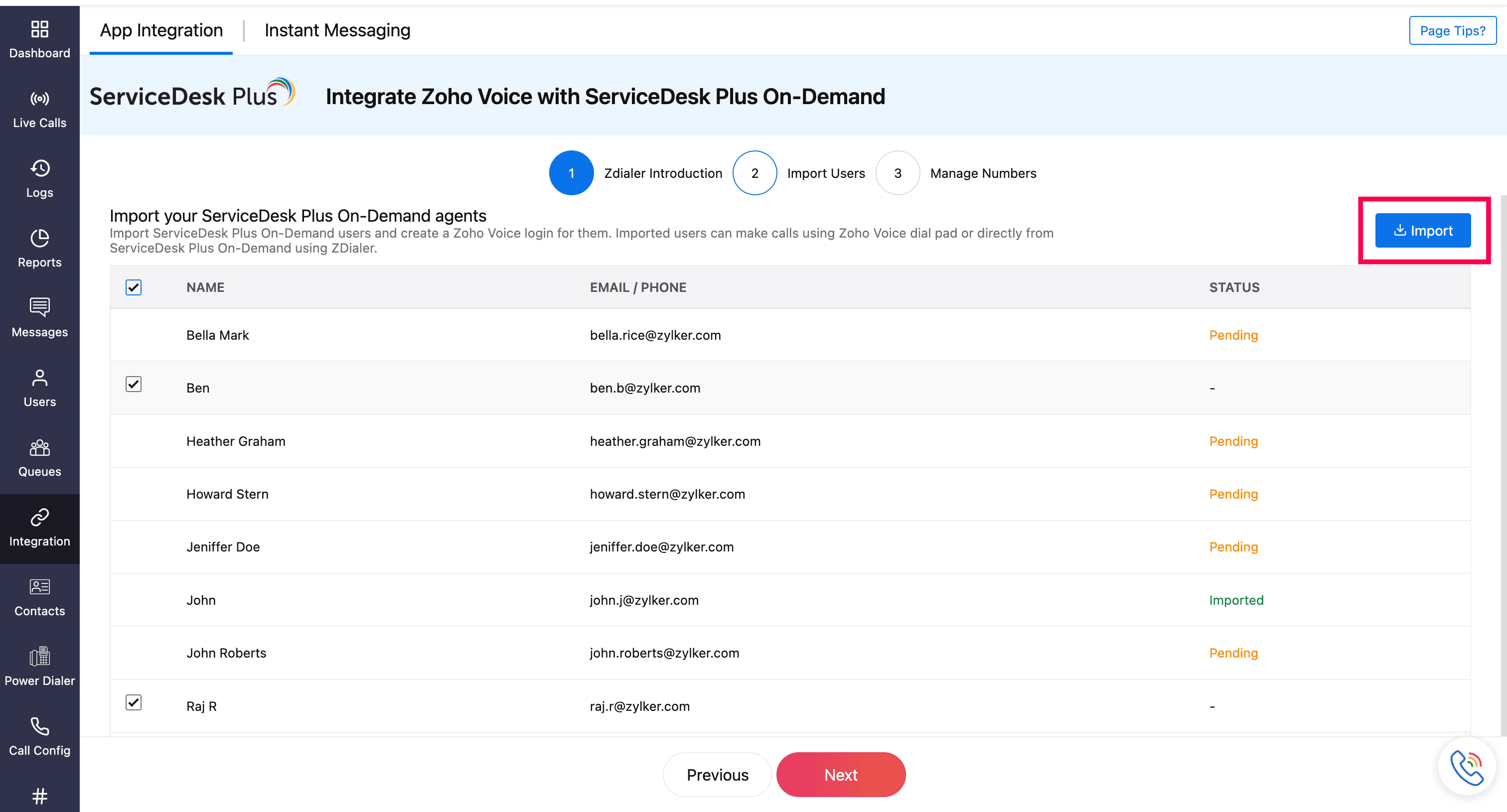 Imported users will receive an email invite. Once they have accepted, they’ll be added to your Zoho Voice account.