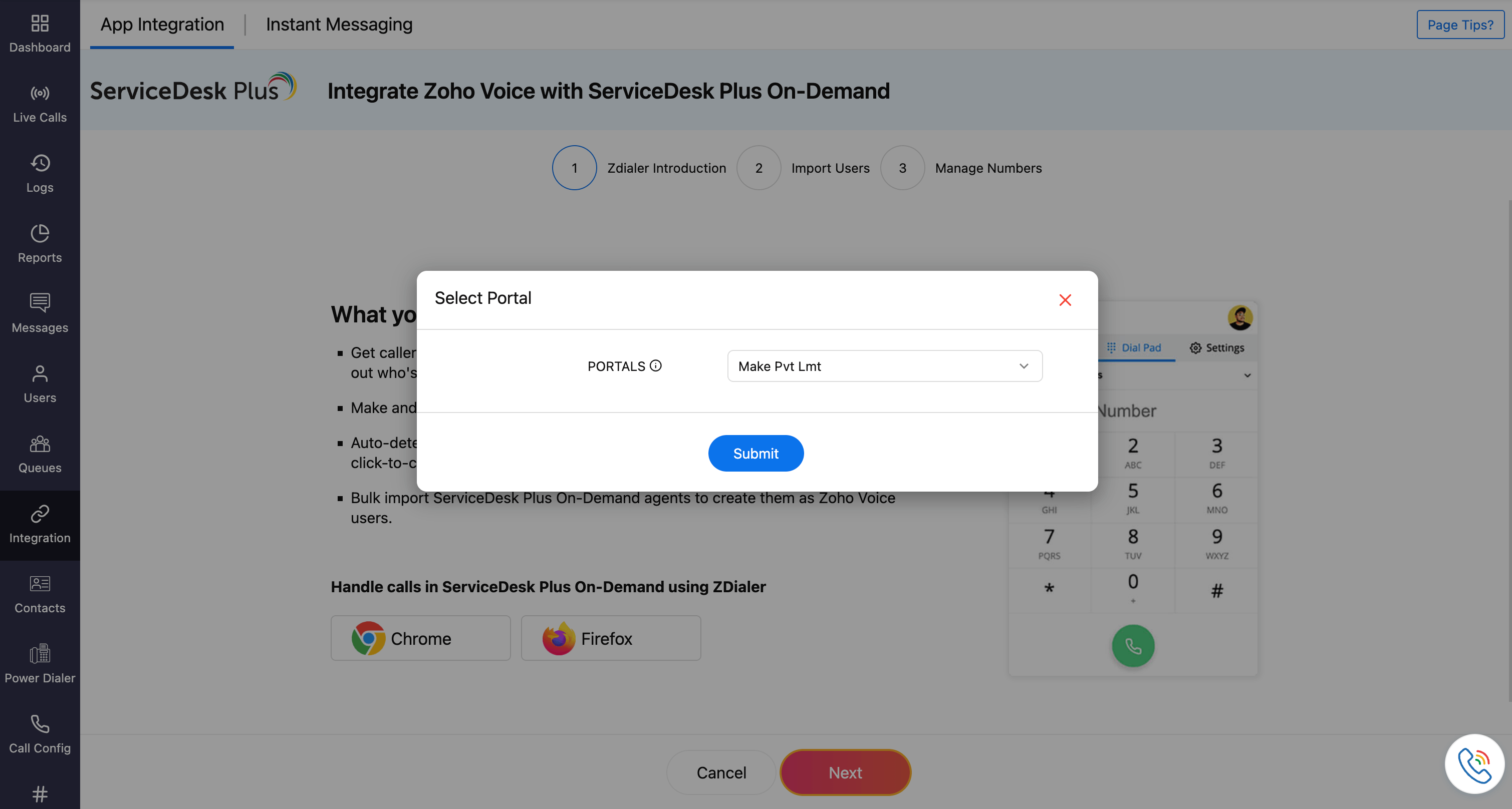 To enable features such as click-to-call, dial pad access, and incoming call pop-ups within ServiceDesk Plus On-Demand, the ZDialer browser extension must be installed.