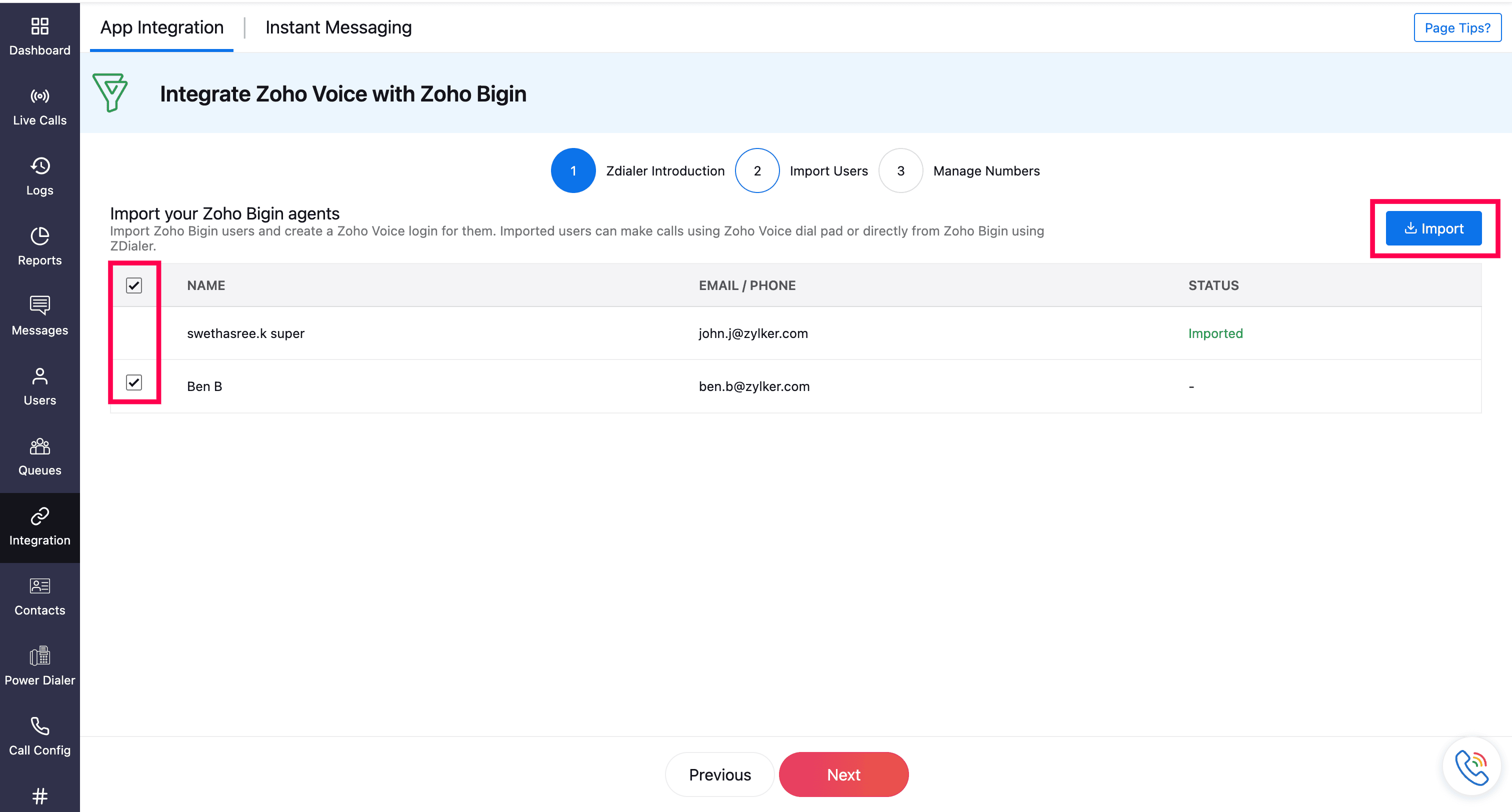 Imported users will receive an email invite. Once they have accepted, they’ll be added to your Zoho Voice account.
