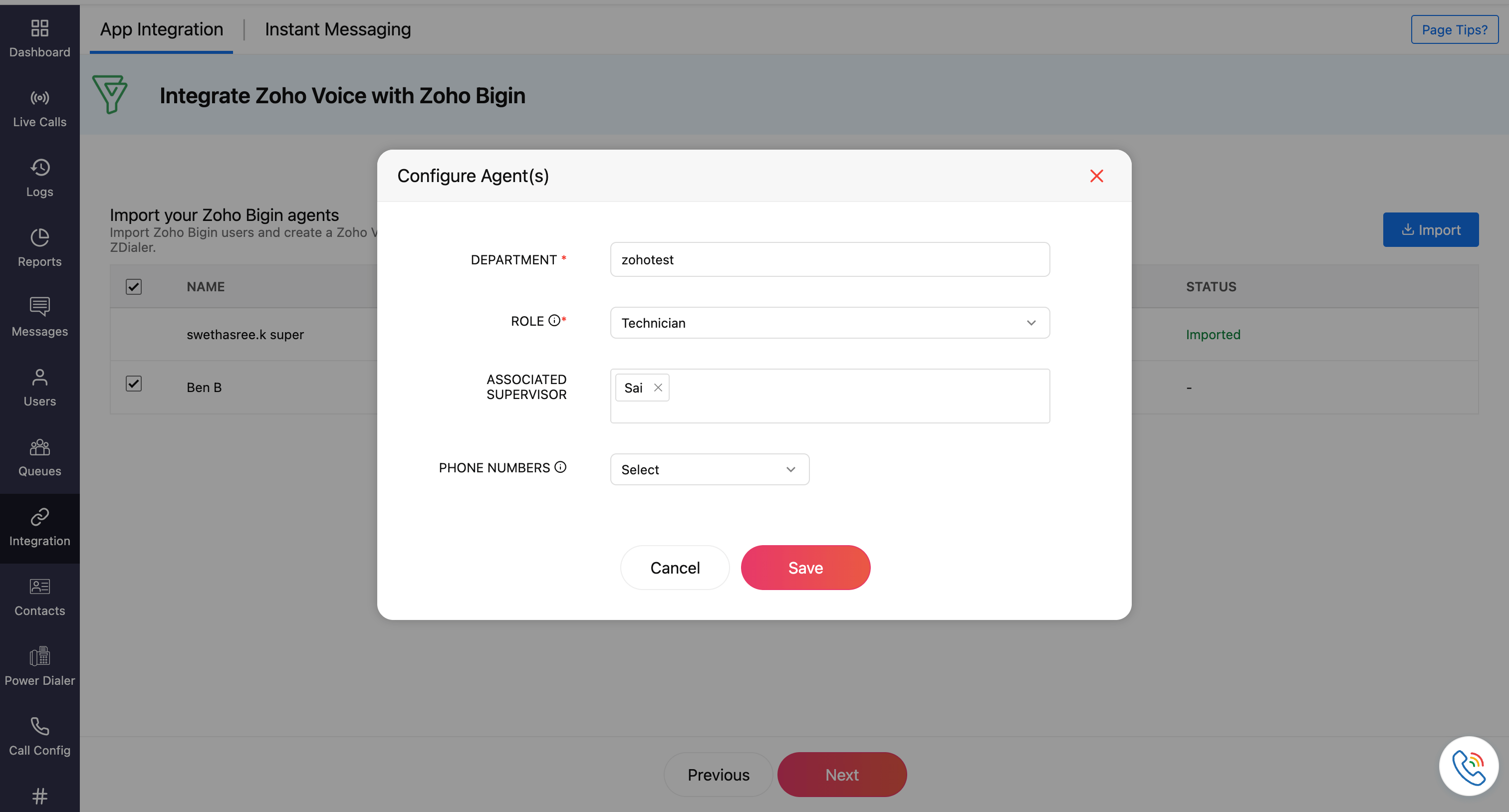 The native integration between Zoho Voice and Zoho Bigin allows users to identify contacts in real time when making or receiving calls via the Zoho Voice web or mobile apps. Contact lookup is triggered automatically based on the caller’s number. To access in-app features such as click-to-call, dial pad access, and incoming call pop-ups within Bigin, the ZDialer browser extension must be installed.